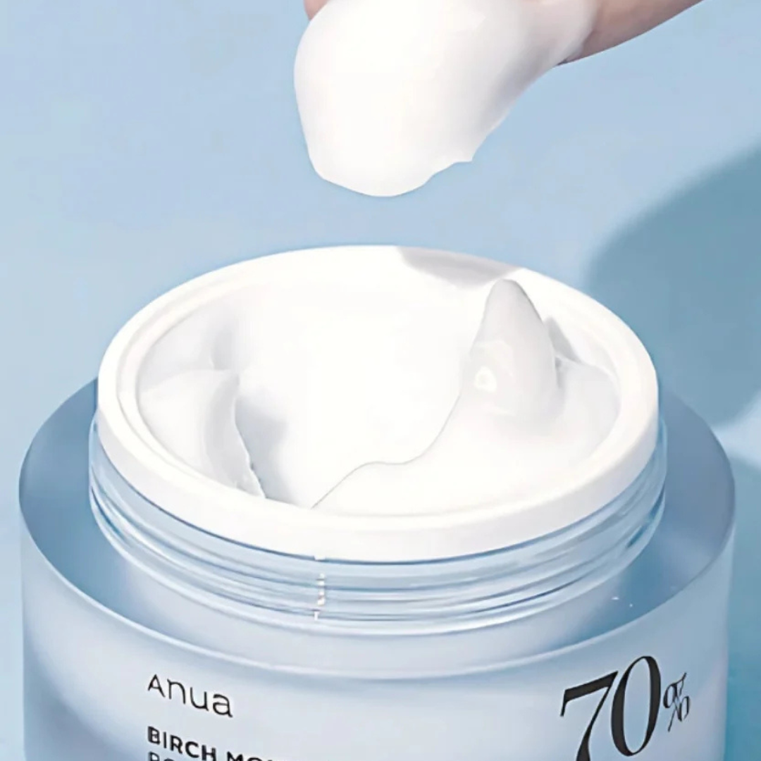 H Anua Birch 70 Moisture Boosting Cream είναι μια κρέμα προσώπου με κύριο συστατικό τον χυμό σημύδας, ο οποίος ενυδατώνει σε βάθος και βελτιώνει τη σφριγηλότητα και την ελαστικότητα του δέρματος. Η σύνθεσή της περιλαμβάνει επίσης βεταΐνη και αλλαντοΐνη, συστατικά που ελαχιστοποιούν τους ερεθισμούς και καταπραΰνουν το δέρμα, ενώ παράλληλα συμβάλλουν στην ταχύτερη επούλωση φλεγμονών. Επιπλέον, το υαλουρονικό οξύ και η γλυκονολακτόνη ενυδατώνουν εντατικά, αναπλάθουν και λειαίνουν την επιδερμίδα, χαρίζοντάς της βελούδινη απαλότητα.