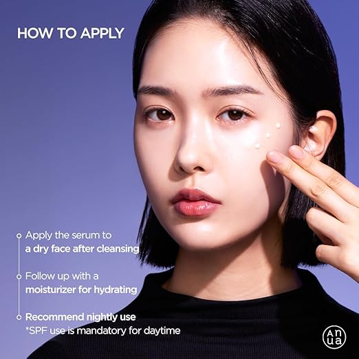 Εφαρμόστε 1-2 σταγόνες σε ολόκληρο το πρόσωπο, μετά το τόνερ κατά την βραδινή σας ρουτίνα. Μπορείτε να χρησιμοποιείτε το προϊόν καθημερινά ή ανά λίγες ημέρες, προσαρμόζοντας τη συχνότητα ανάλογα με την ευαισθησία του δέρματός σας. Όταν χρησιμοποιείτε το προϊόν, θυμηθείτε να εφαρμόζετε αντηλιακό υψηλής προστασίας SPF κατά τη διάρκεια της ημέρας.