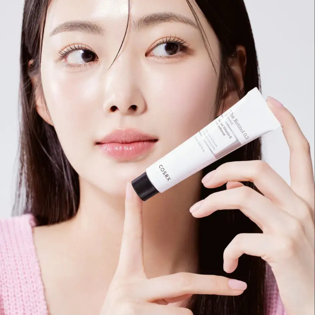 Η κρέμα προσώπου COSRX The Retinol 0.3 Cream είναι σχεδιασμένη για όσους έχουν ήδη χτίσει ανεκτικότητα στη ρετινόλη. Περιέχει 0.3% ρετινόλη, η οποία δρα πολυεπίπεδα, μειώνει την εμφάνιση ρυτίδων, βελτιώνει τη σφριγηλότητα, ενισχύει τη λάμψη, ρυθμίζει την έκκριση σμήγματος, μειώνει την εμφάνιση πόρων και την εμφάνιση ακμής. Σε συνδυασμό με τη βιταμίνη Ε προστατεύει από τις ελεύθερες ρίζες, ενώ η πανθενόλη καταπραΰνει και επιταχύνει την αναγέννηση. Η τρεαλόζη και το υαλουρονικό οξύ ενυδατώνουν βαθιά, ενώ η αδενοσίνη ενισχύει την αντιγηραντική δράση.