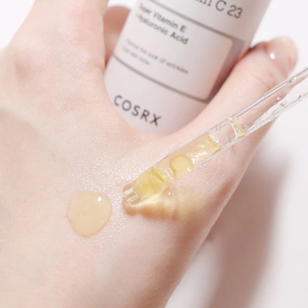 Ο ορός προσώπου Cosrx The Vitamin C 23 Serum περιέχει 23% βιταμίνη C, προσφέροντας έντονη λάμψη και μείωση των δυσχρωμιών, ενώ καταπολεμά τις ελεύθερες ρίζες επιβραδύνοντας τη γήρανση της επιδερμίδας. Η πανθενόλη και η νιασιναμίδη συμβάλλουν στη μείωση των ερεθισμών και των κοκκινίλων, ενώ η καφεΐνη διεγείρει τη μικροκυκλοφορία και ενισχύει τη φυσική αναγέννηση της επιδερμίδας. Το σκουαλένιο ενυδατώνει και ενδυναμώνει τον υδρολιπιδικό φραγμό του δέρματος, ενώ το εκχύλισμα ρίζας γλυκόριζας έχει αντιφλεγμονώδη δράση και βοηθά στη μείωση των δυσχρωμιών. Το αποτέλεσμα είναι μια πιο λαμπερή, ομοιόμορφη, ενυδατωμένη και νεανική επιδερμίδα.